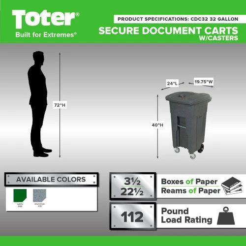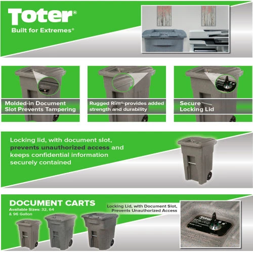 - This Toter document cart is compatible with most cart lifters and shredding equipment