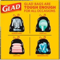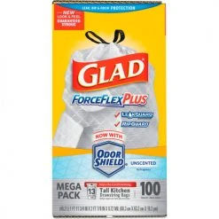 Glad® ForceFlex Tall Kitchen Drawstring Trash Bags – White, 13 Gal, 0.9 Mil, 100/Box – 70427