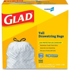 Glad® Tall Kitchen Drawstring Trash Bags, 13 Gal, 0.72 mil, 23.75" x 24.88", White, 240/Case