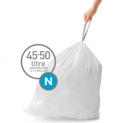 simplehuman® Trash Can Liner Code N, 12-13 Gallon, 22.8 X 31.5, 1.18 Mil, White, Pack of 200