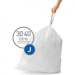 simplehuman® Trash Can Liner Code J – 10.5 Gallon, 21.1 X 28, 1.18 Mil, White, Pack of 240