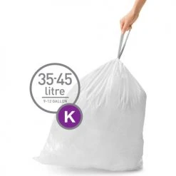 simplehuman® Trash Can Liner Code K – 12 Gallon, 24.4 X 28, 1.18 Mil, White, Pack of 240