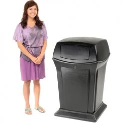 Rubbermaid® Plastic Square 2 Door Trash Can, 35 Gallon, Black