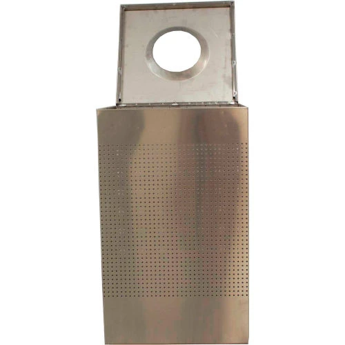 - Brushed stainless steel receptacle with perforated holes