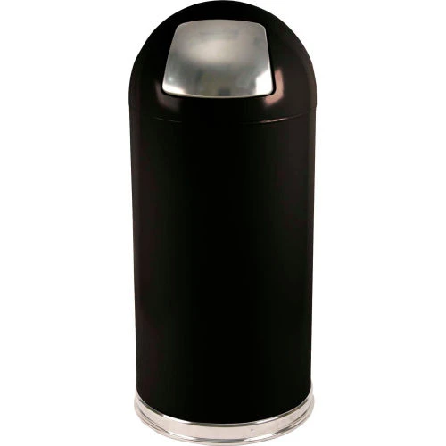 Witt Industries Witt Standard Steel Round Trash Can W/Push Door Dome Top, 15 Gallon, Black